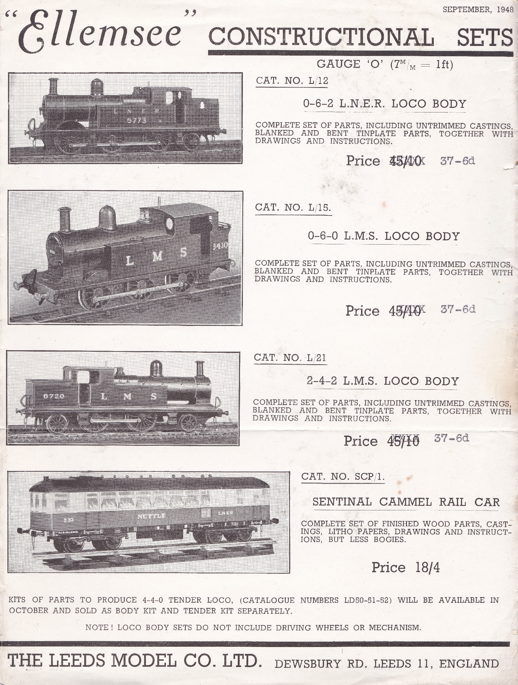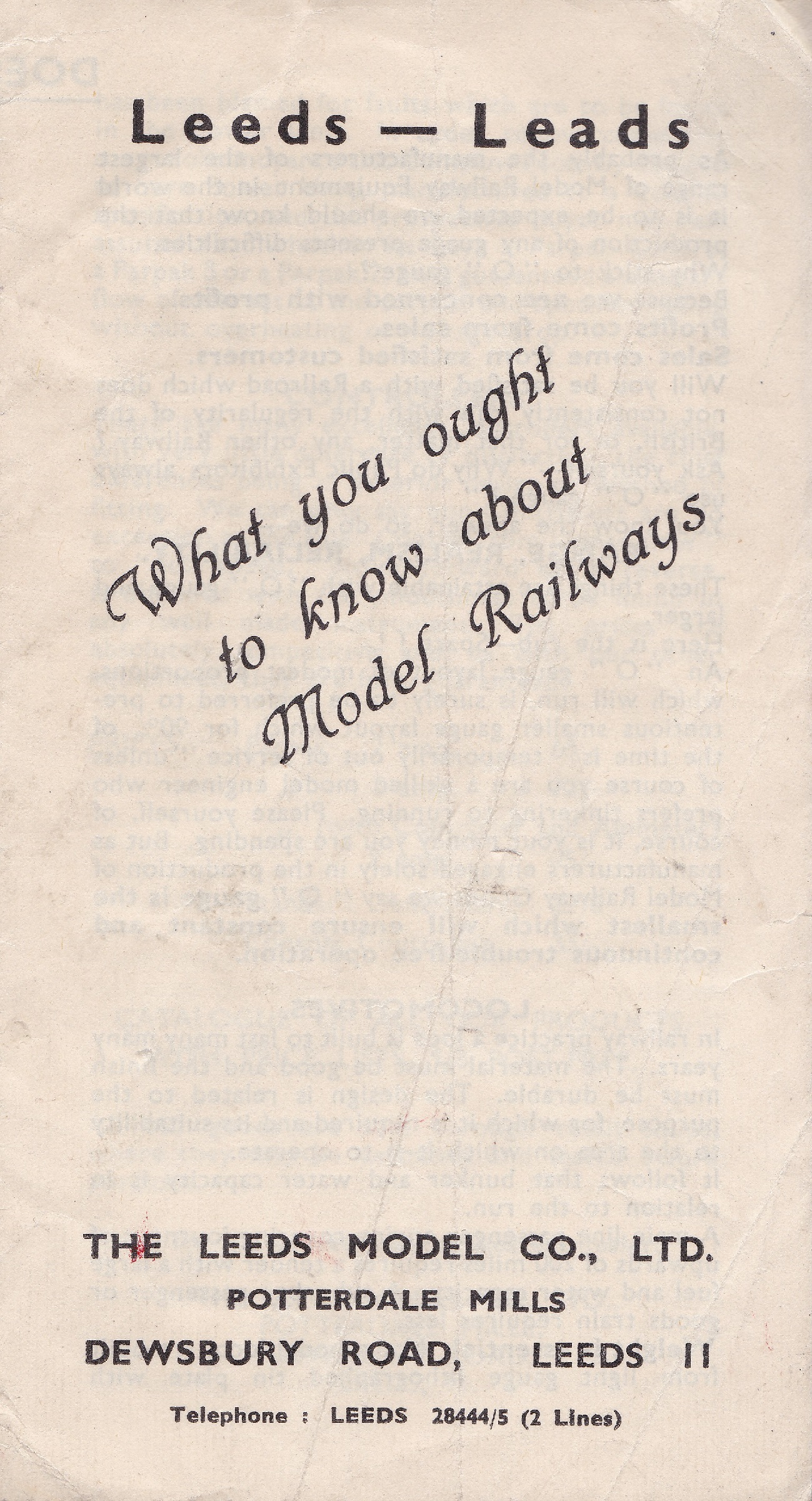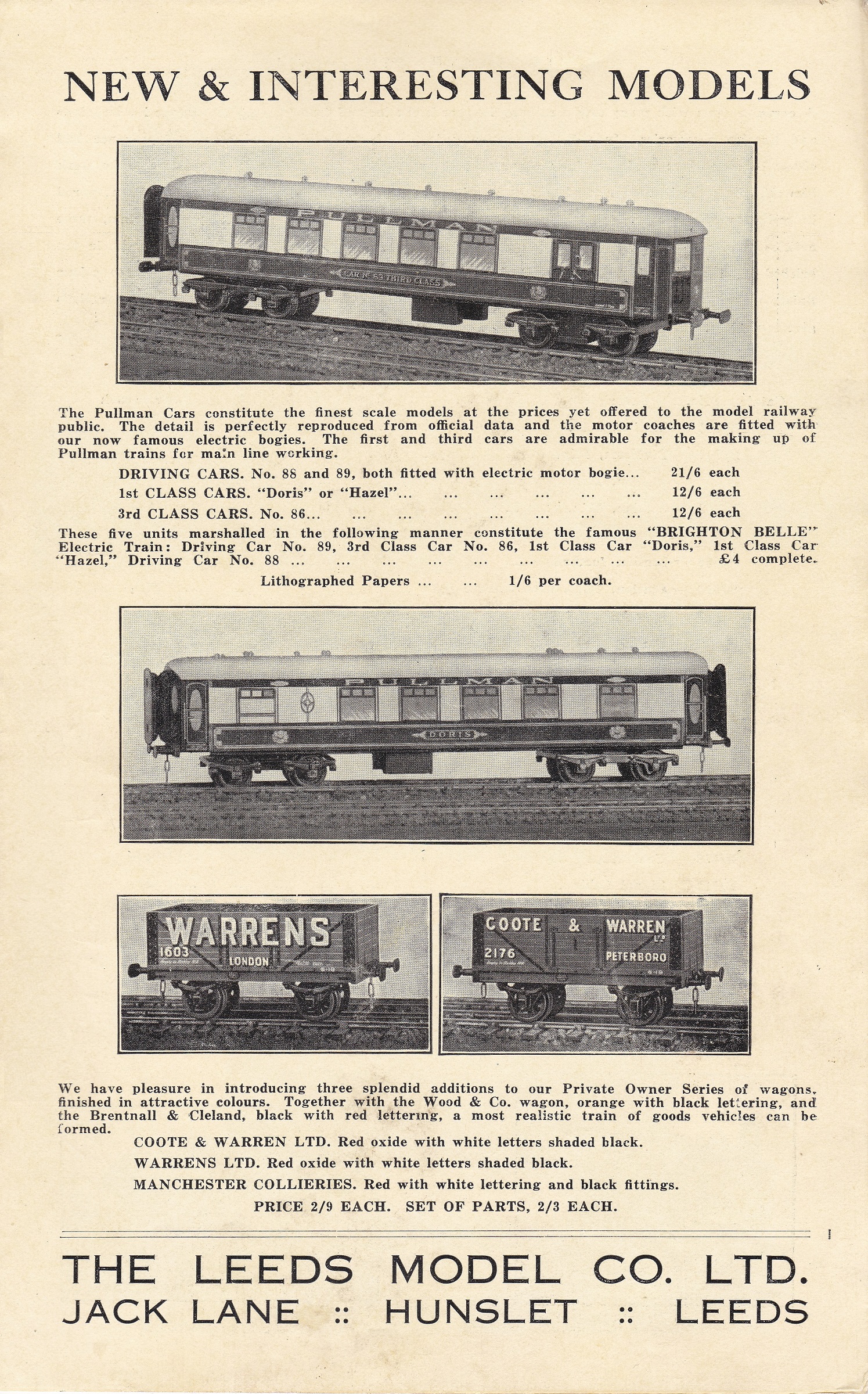This page displays the covers of most of the catalogs and leaflets published by the Leeds Model Company. Sometimes a cover was used for several years or different versions were released in a single season with the cover unchanged. In those cases the page where the distinction is most clearly made is shown alongside the cover.